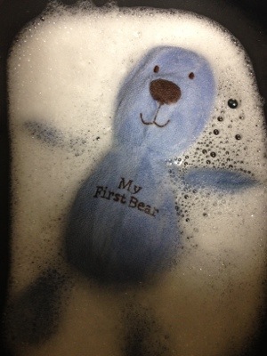 Caden’s bear, which he has had ever since he was born finally got another bath. He is blue again! (Anne snuck Huggy away in the middle of the night)